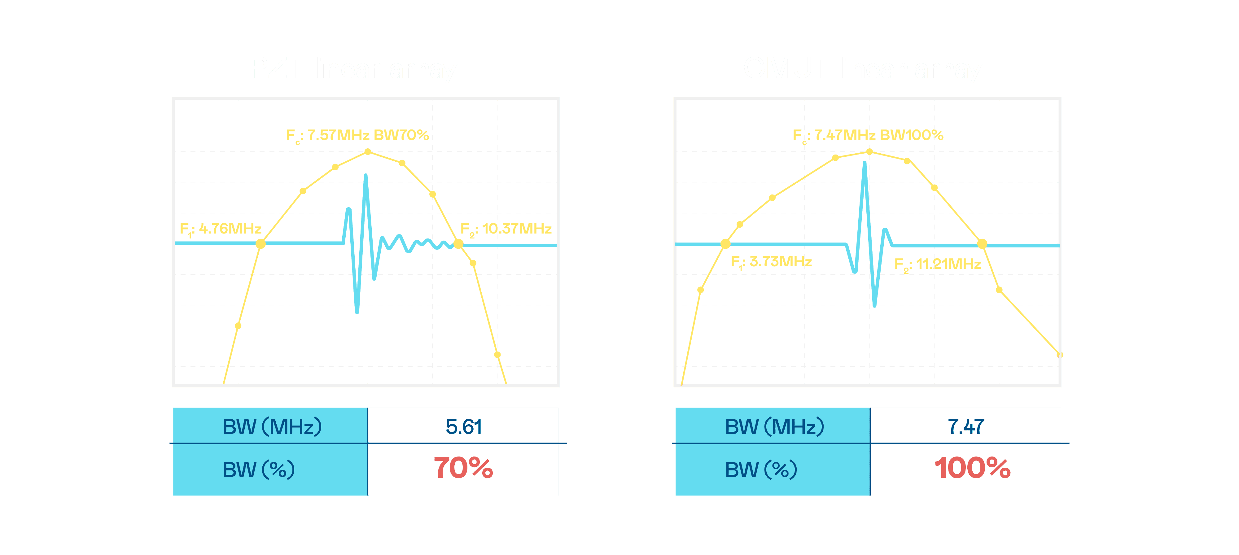 超音波影像的解析度高低,,,,首先取决于探头能发出的讯号频宽。。开云电子 CMUT 可提供高清晰的超音波讯号,,提供高频宽、、、、高灵敏度、、、影像纹理细节更高的超音波影像,,,,协助医护人员缩短影像判读时间及利用精准的医疗影像进行诊断。。